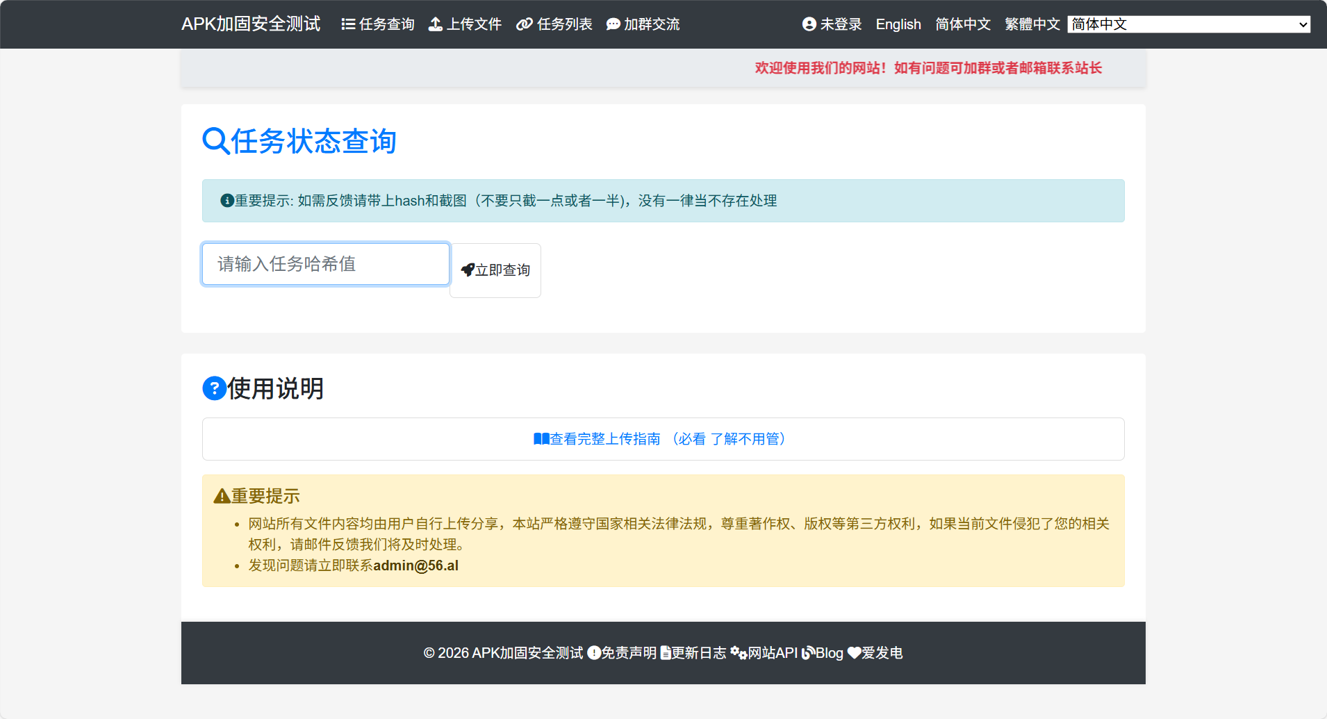 打开脱壳网站,上传加固的apk包,下载脱壳结果