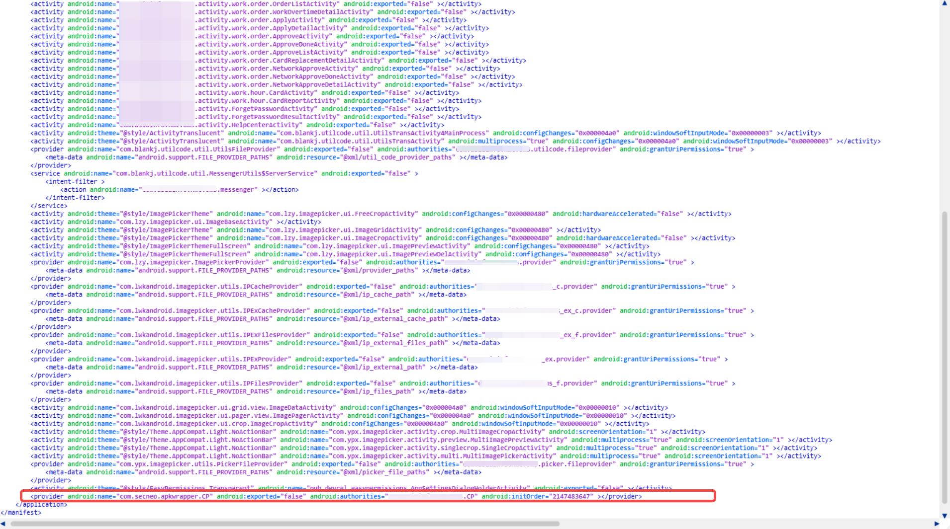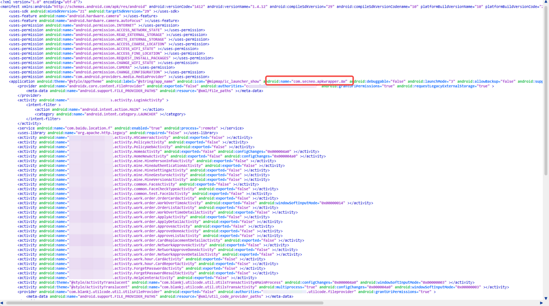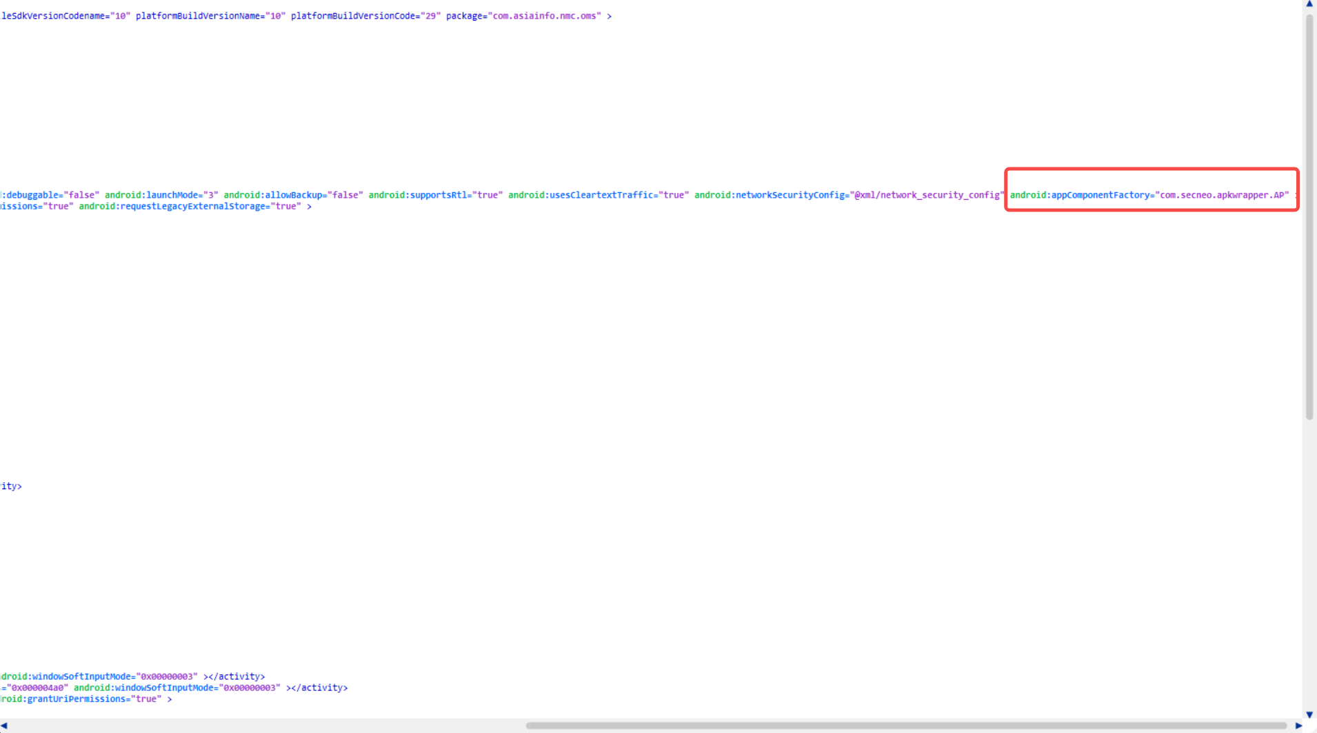 android:appComponentFactory的值 com.secneo.apkwrapper.AP 替换成ACFNAME的值